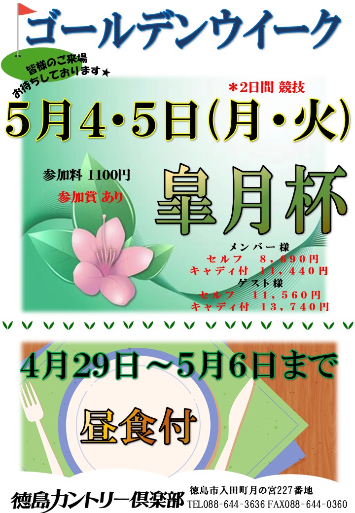 【メンバー様・ゲスト様】皐月杯開催のご案内(GW期間中:5/4,5/5)